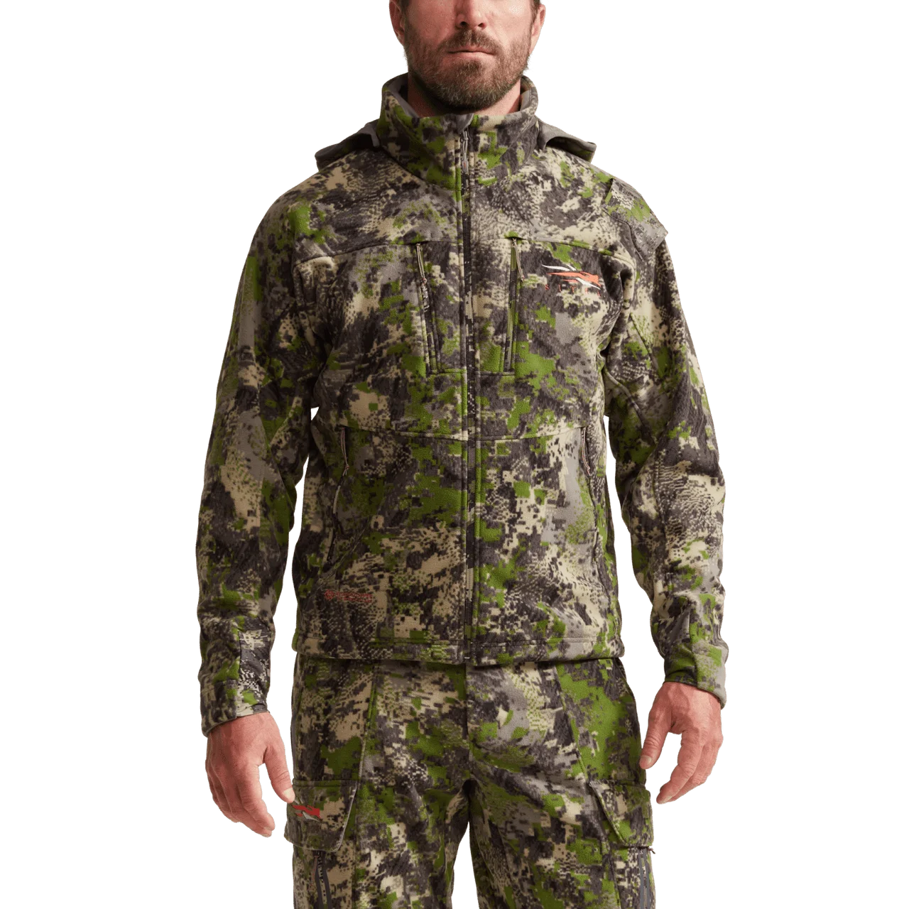 Weight: 23.9 oz. // Size LWarm micro-fleece with WINDSTOPPER® by Gore-Tex Labs technologyConstant-connect SITKA Safety Harness Pass-Through PortRemovable hood with direct hearing portsFast-access grunt tube holderYKK zippered chest and hand pocketsDurable Water Repellent Finish