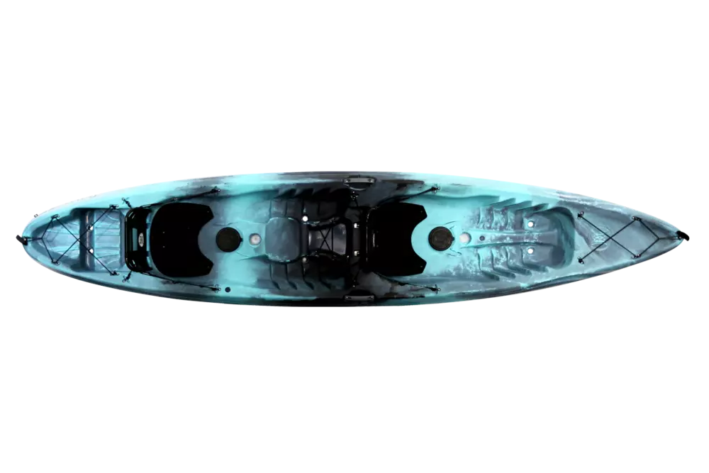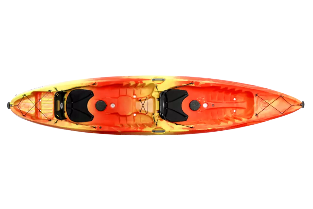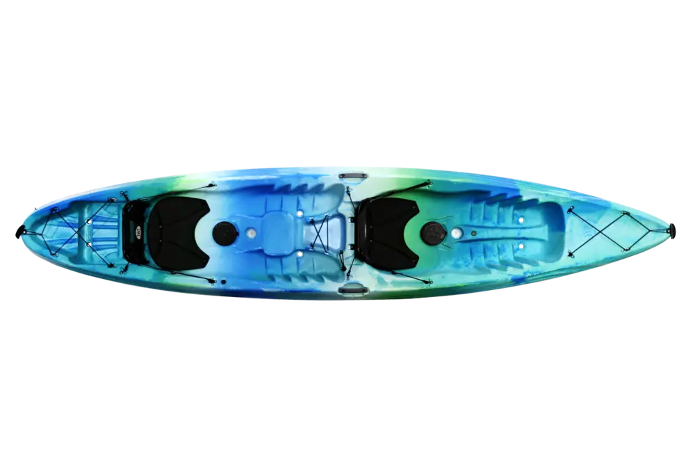 Affordable and easy-going, the Tribe 13.5T kayak performs terrifically in light surf, lazy rivers and flat water for you and your favorite paddling partner. Thanks to a high-back frame seat, the Tribe is now even more comfortable with increased support and cushioning. The new seatback takes relaxation to the next level with multiple recline positions, creating the ultimate lounge to kick back, relax and catch some rays together while floating about. Lightweight and fully stackable, with many handles, getting this tandem kayak to the water is a total breeze.